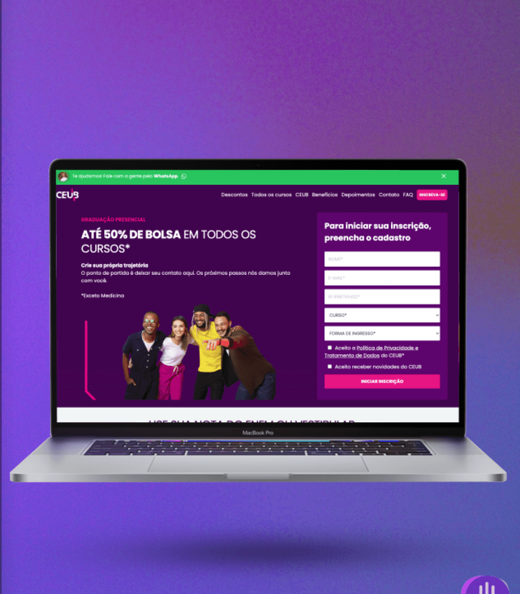 - Criação de Landing Page e estudo de navegação e conteúdo para facilitar a conversão e a qualificar do lead;